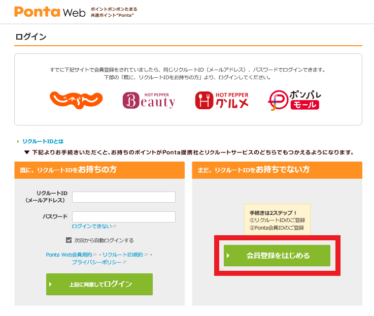 ポンタ カード リクルート Id