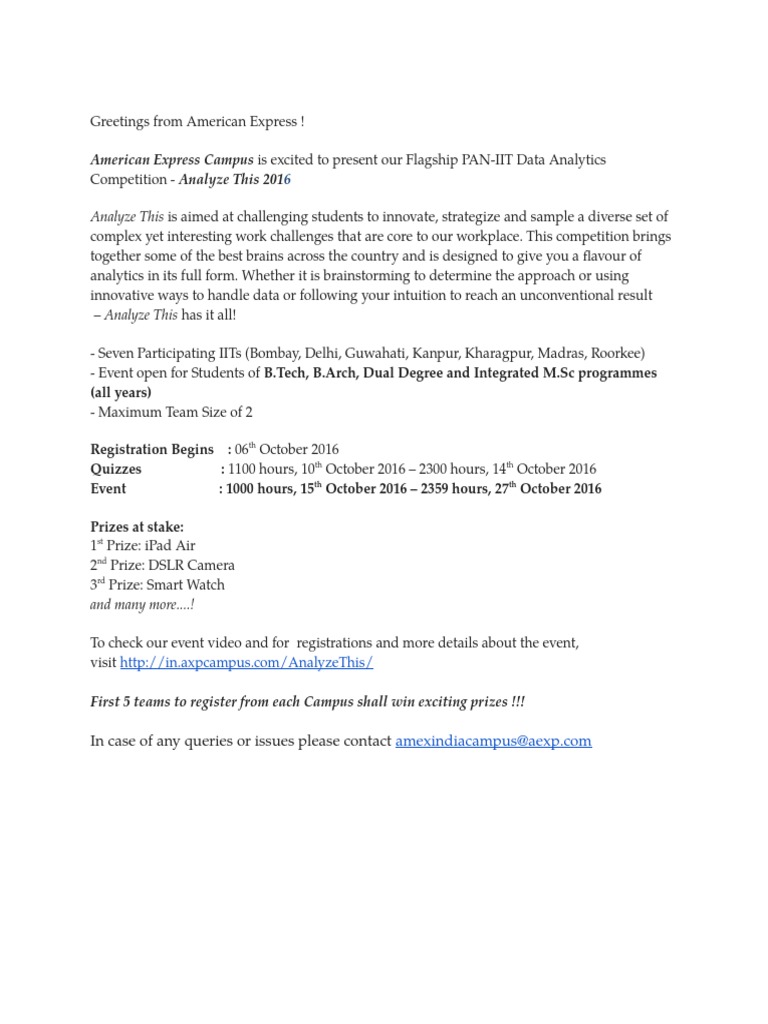 Competition American Express Global Campus
